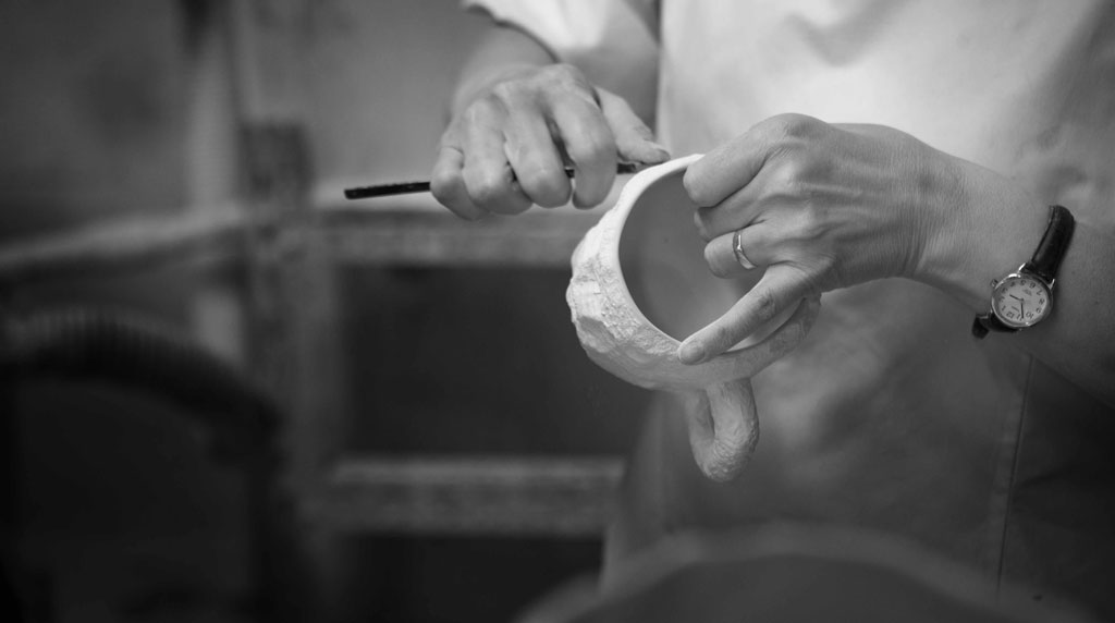 From the ‘master’ one or more plaster production moulds can be made, often consisting of three or more parts to enable the cast to be safely removed in one piece. Crockery is now ready for casting in fine bone china.