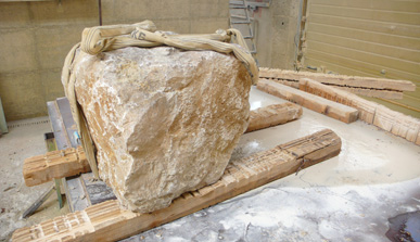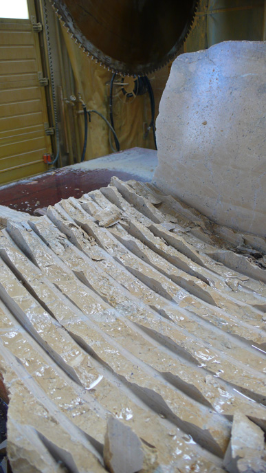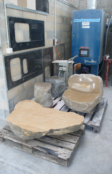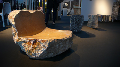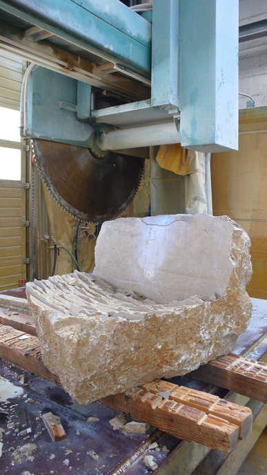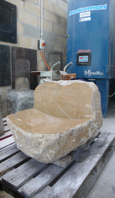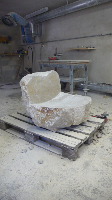 A chair machine-cut, polished and hand-carved in Limestone from La Cernia Quarry near Neuchatel in Switzerland.