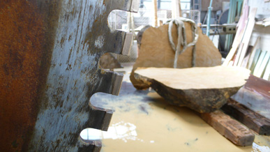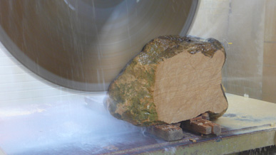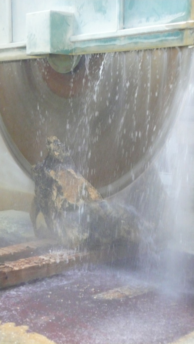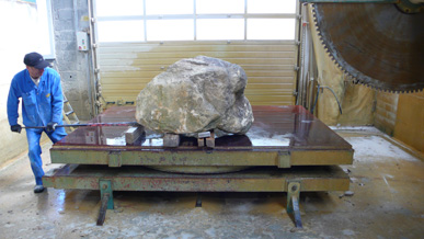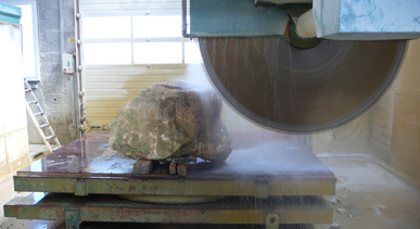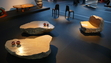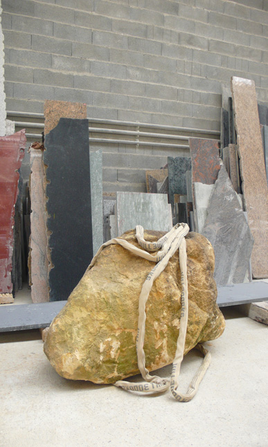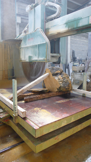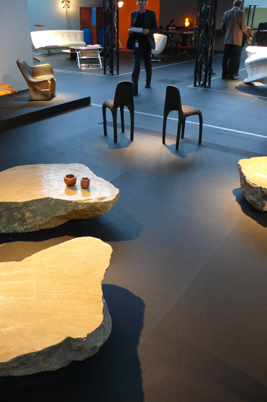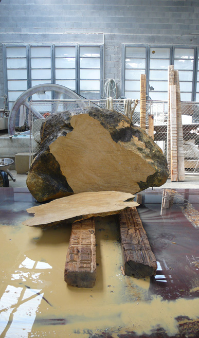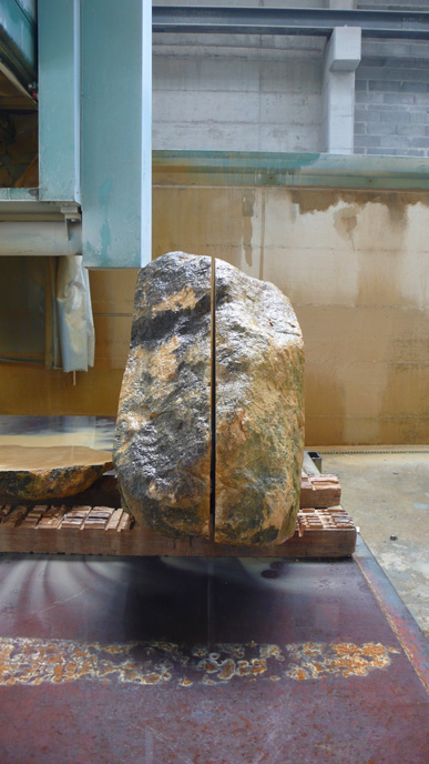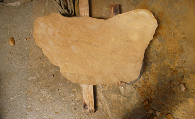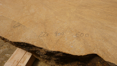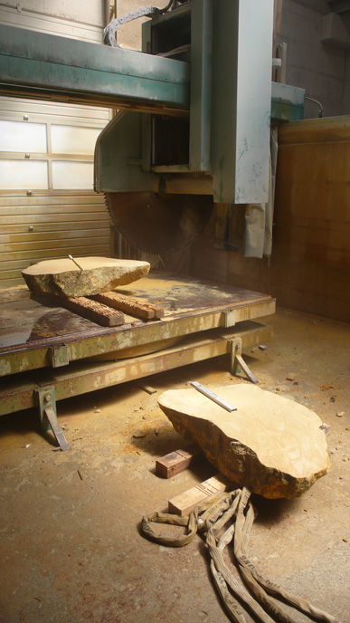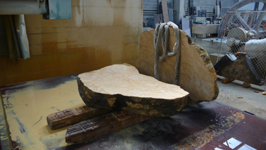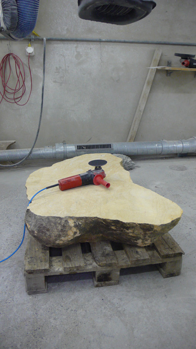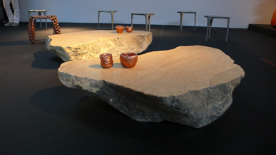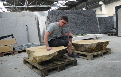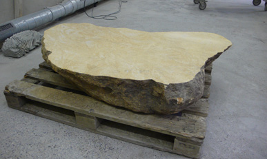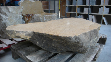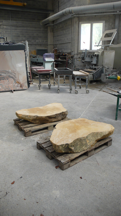 A pair of tables cut from a single Sandstone boulder from La Cernia Quarry near Neuchatel in Switzerland.